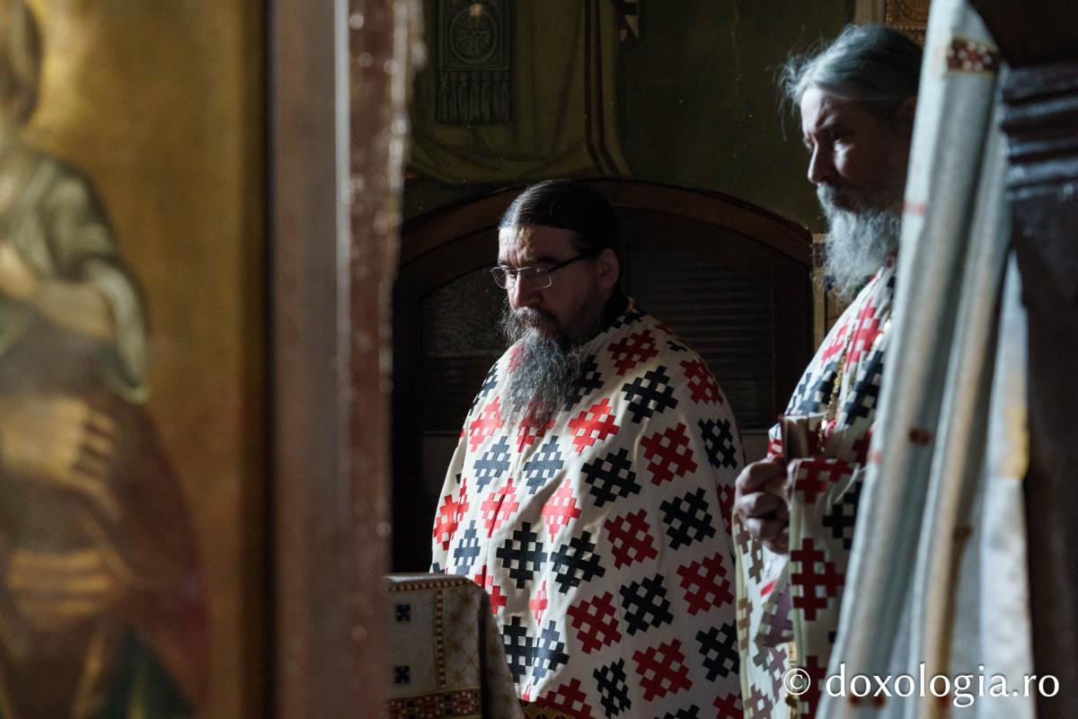 Sfânta Liturghie a fost săvârșită de Înaltpreasfinţitul Părinte Teofan, Mitropolitul Moldovei și Bucovinei, înconjurat de un sobor de preoți și diaconi.